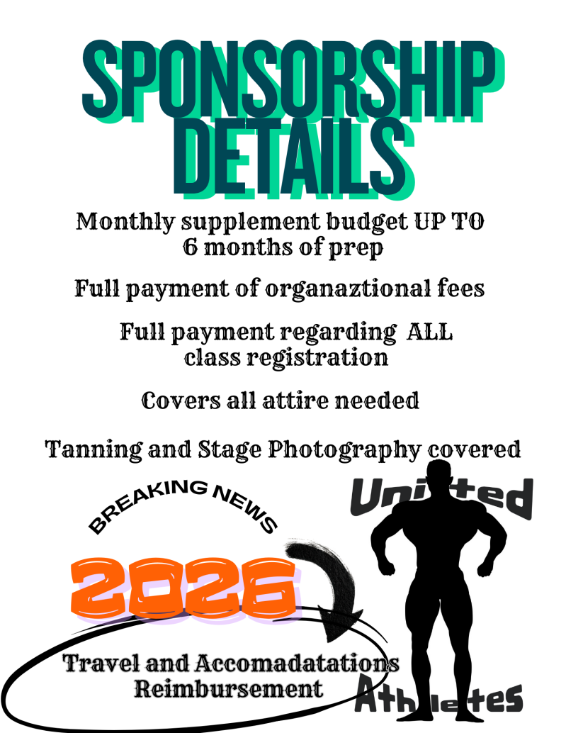 United Athletes Inc. was created to address these challenges. Our sponsorship program helps first-time competitors participate in their debut show without financial stress, allowing them to focus on essential aspects like diet and training to become stage-ready. It may sound too good to be true, but that’s exactly our goal. Will you be the next United Athlete?